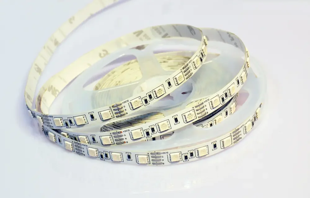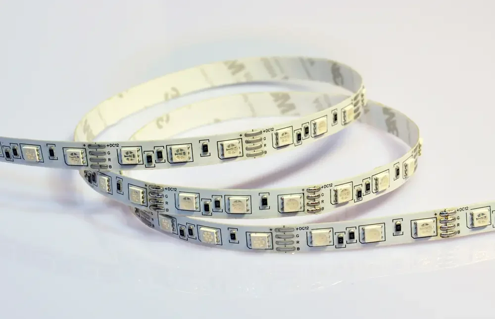 - RGB-лента с возможностью настройки цвета и эффектов через пульт или приложение, идеальна для создания динамичного освещения.