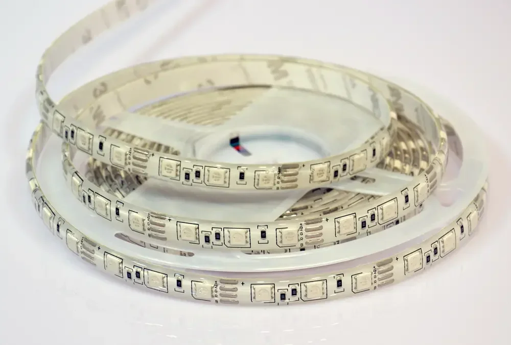 - RGB-лента с возможностью настройки цвета и эффектов через пульт или приложение, идеальна для создания динамичного освещения.