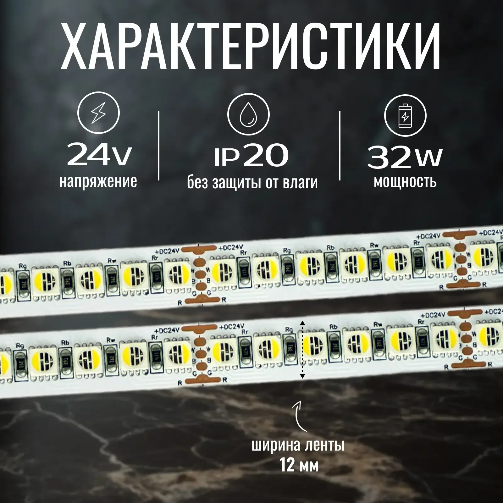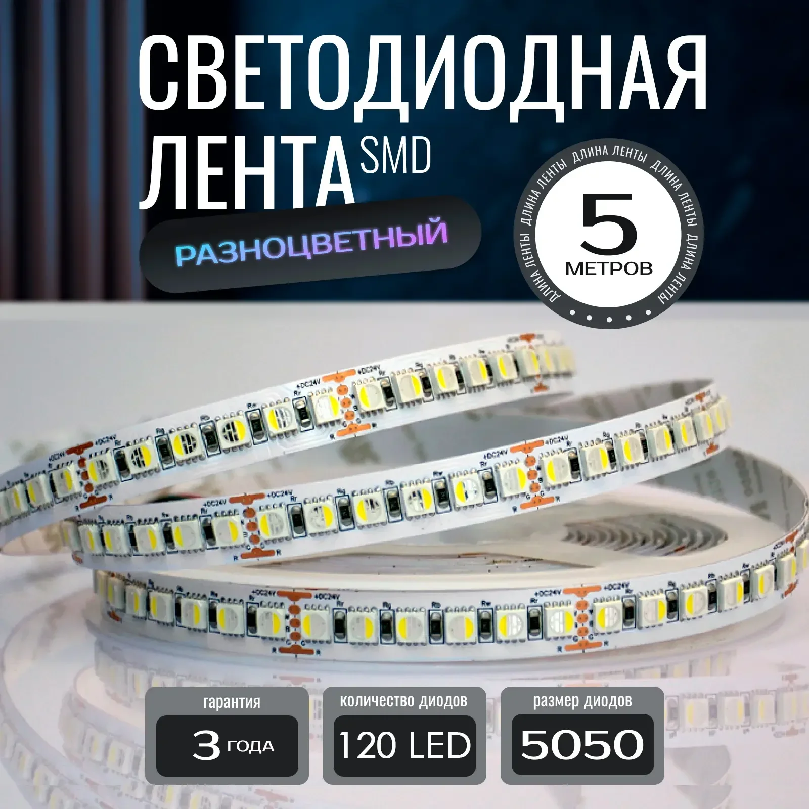 - Лента с трехкристальными светодиодами 5050, обеспечивающими высокую яркость и равномерное свечение.