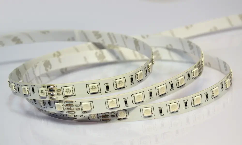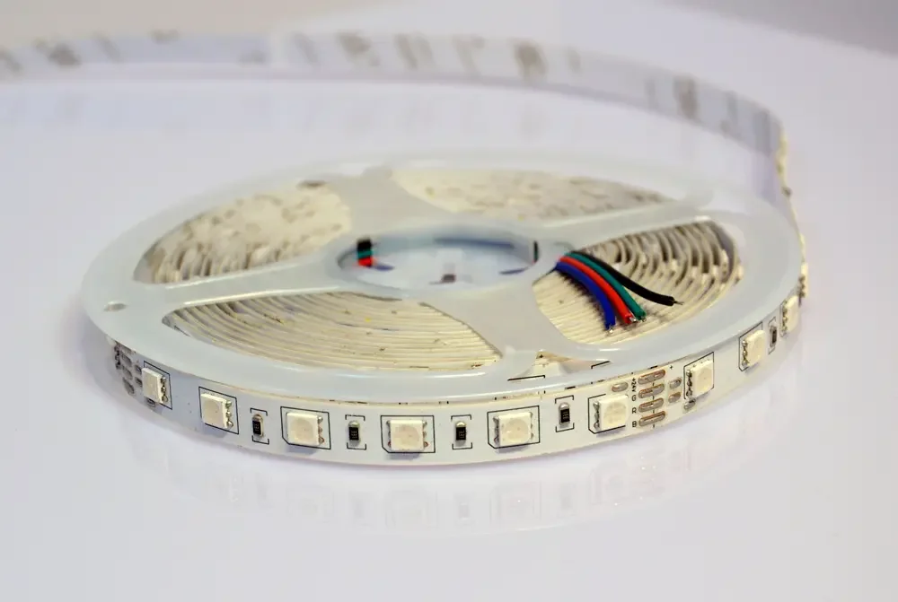 - RGB-лента с возможностью настройки цвета и эффектов через пульт или приложение, идеальна для создания динамичного освещения.