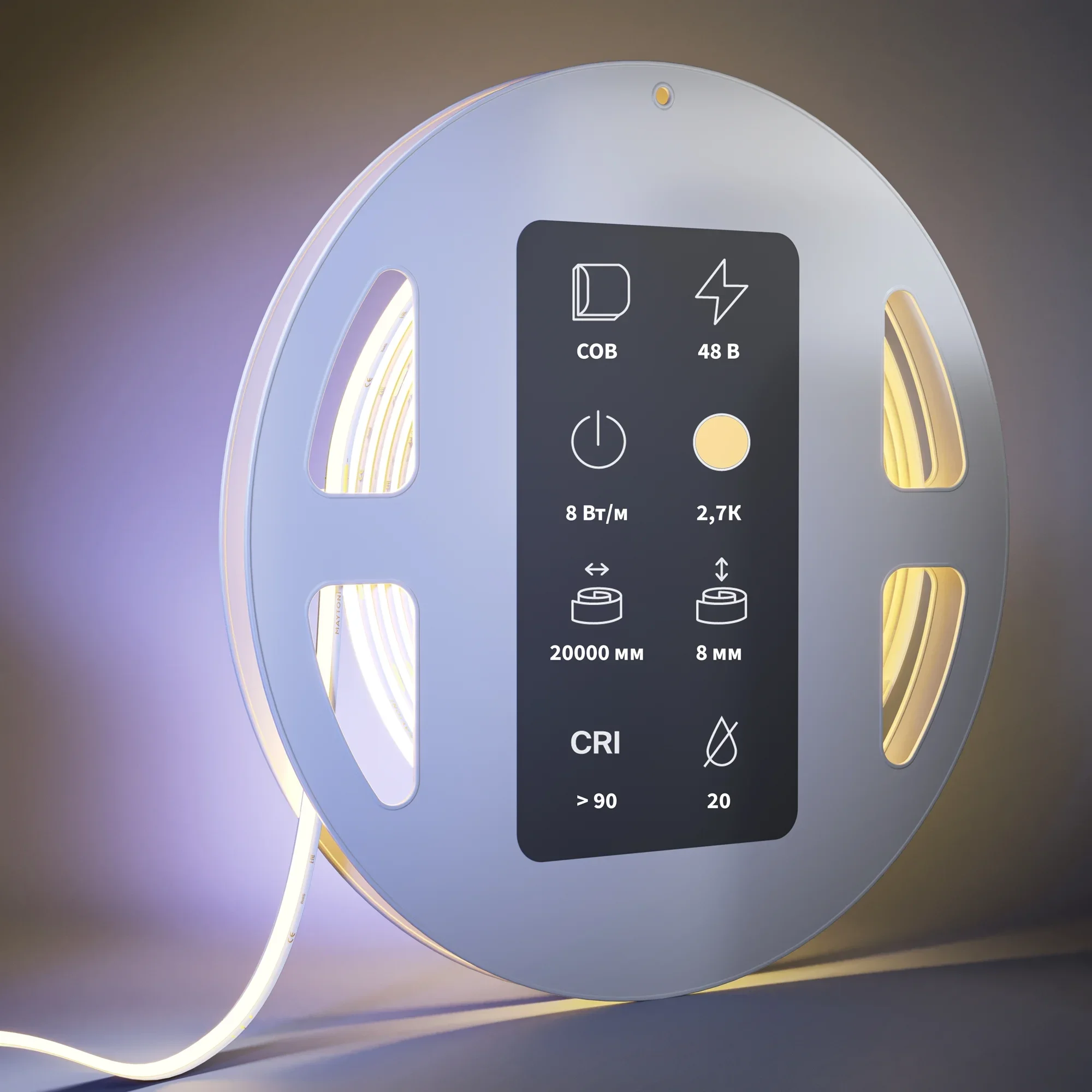 Светодиодная лента Ultra 48В COB 8Вт/м 2700K 20м IP20 201218