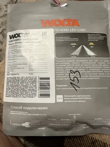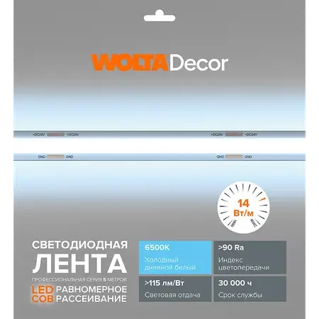 Светодиодная лента WOLTA WLSCOB-11W/6500/24H320-01 11Вт 6500К 24В IP20 320 led/m