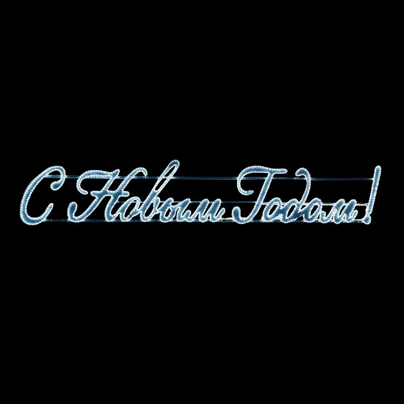 Светодиодная Панно «С Новым Годом!» 400 х 75 см Белое, Дюралайт на Алюминиевом Каркасе, IP54