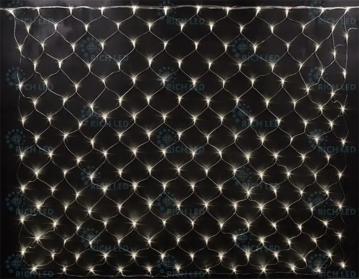 Светодиодная сетка 192 LED, 15 Ватт, IP54, для улицы и помещения, провод Прозрачный, Свечение: 8 режимов, RL-N2*1.5-T/WW
