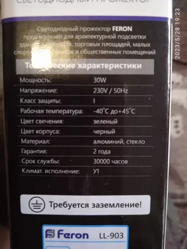 Светодиодный прожектор Feron LL-903 IP65 30W зеленый, 32211