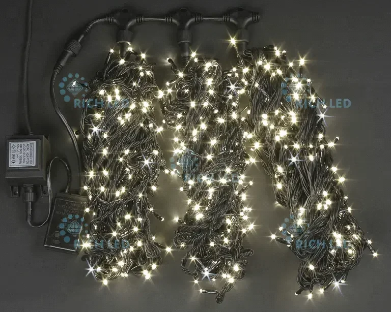 Светодиодный спайдер 600 LED, IP54, для улицы и помещения, провод черный, Свечение: мерцание, RL-S3*20F-B/WW