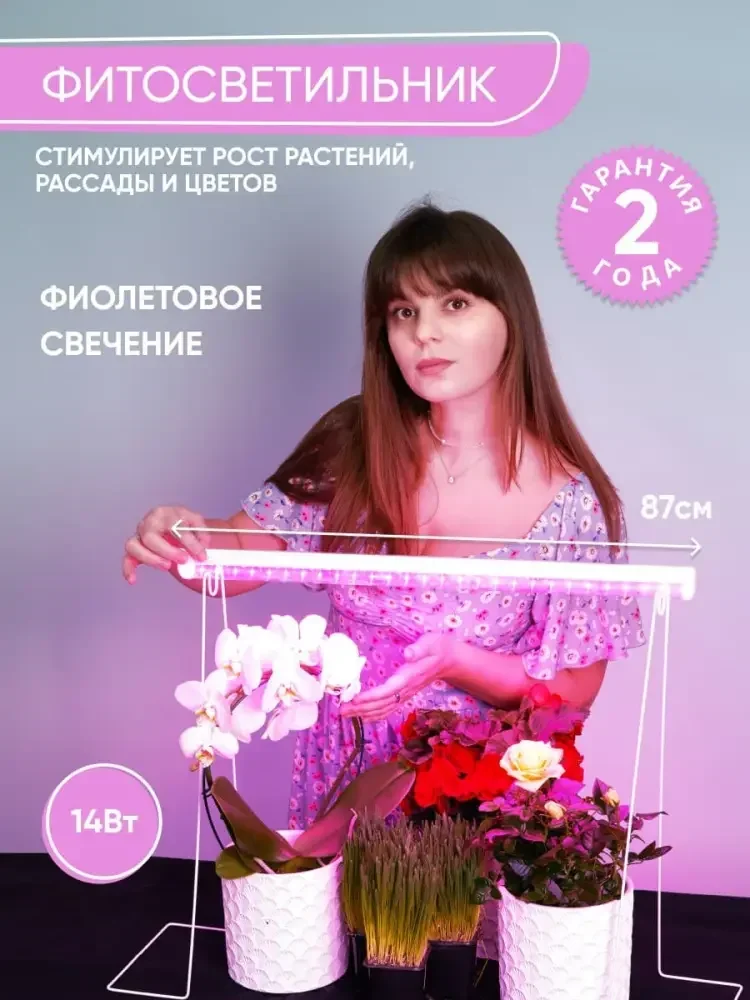 Светодиодный светильник для растений 14W, пластик, красно-синий спектр, с сетевым и соединительным шнуром в комплекте, AL7001
