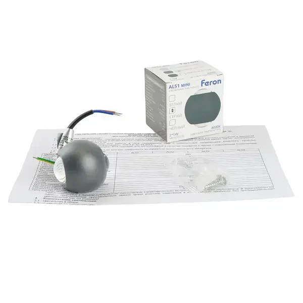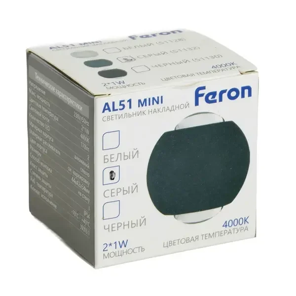 Светодиодный светильник стационарный Feron AL51 MINI 2*1W 4000K серый
