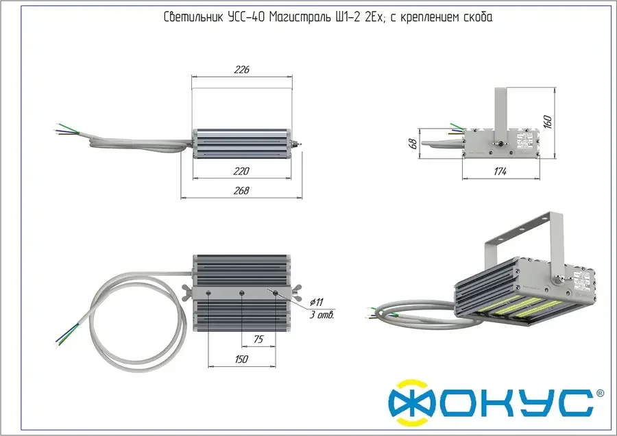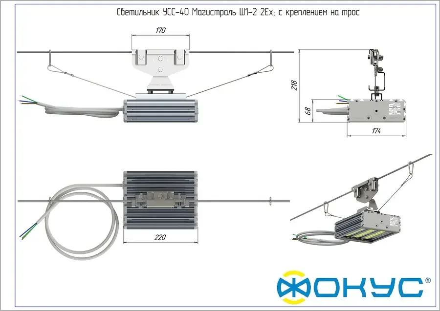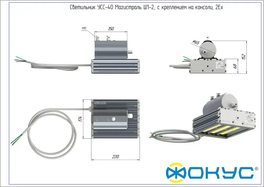 Светодиодный светильник взрывозащищенный УСС 40 МАГИСТРАЛЬ Ш1-2 2Ex