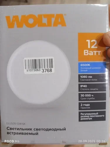 Светодиодный светильник WOLTA DLUS05-12W-6K 12Вт 6500К IP40