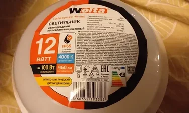 Светодиодный светильник WOLTA LCL04-12W-R11-4K-SOA 12Вт 4000К IP65 с датчиком