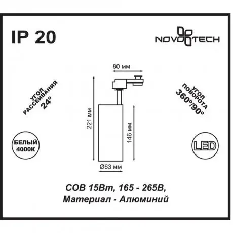 Светодиодный трековый светильник Novotech SELENE 357550