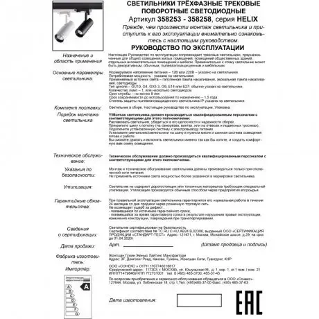 Светодиодный трековый трехфазный светильник Novotech HELIX 358254 LED 10W 220V