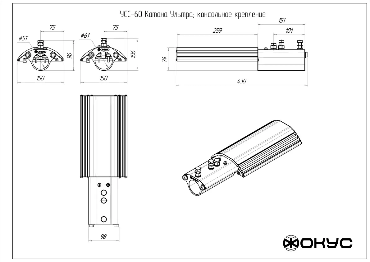 Светодиодный уличный светильник УСС 60 КАТАНА Ультра КОНСОЛЬ LIQUOS