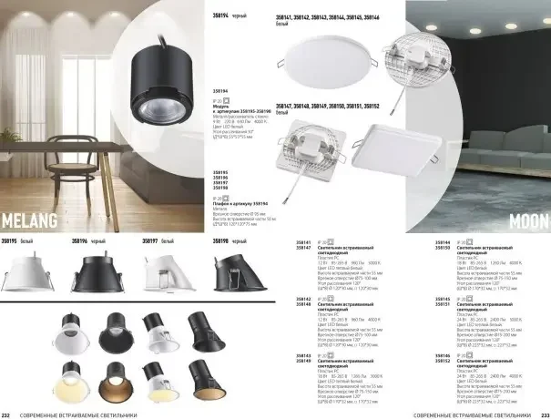 Светодиодный встраиваемый светильник с регул. врезным отверстием Novotech MOON 358150 18W