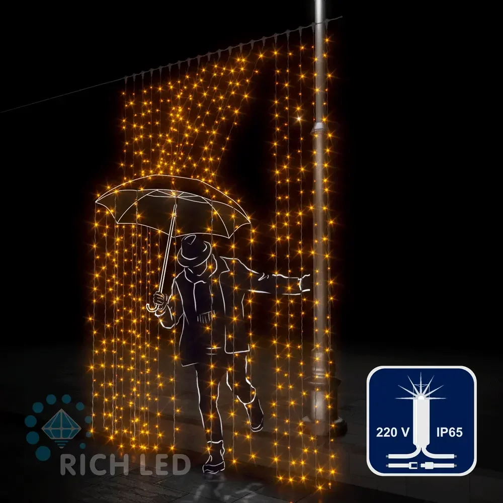 Светодиодный занавес, 74 Ватт, IP54, 200x300, провод Белый, RL-C2*3F-CW/Y