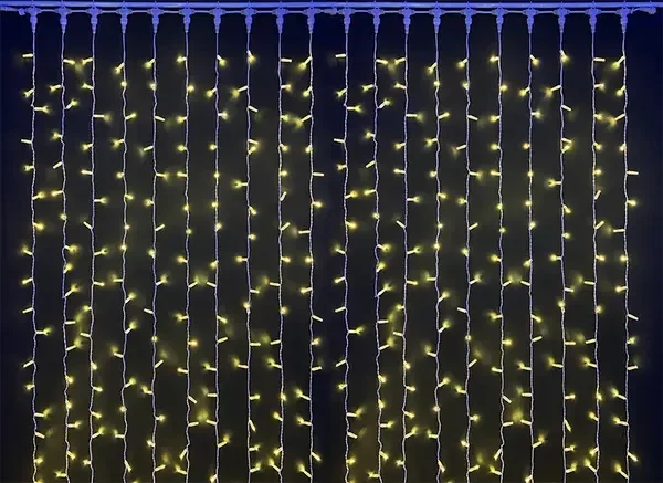Светодиодный занавес (дождь) Rich LED 2*1 м облегченный, влагозащитный колпачок, тепло белый, прозрачный провод, RL-CS2*1-CT/WW