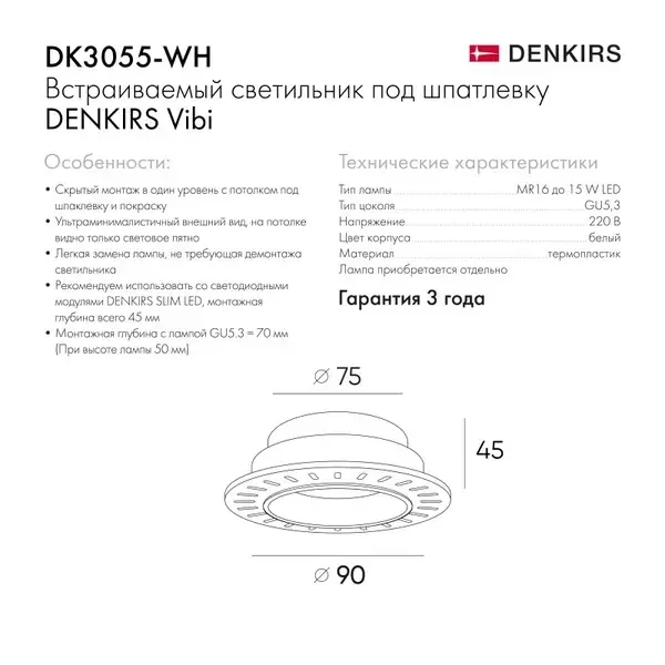 Точечный встраиваемый светильник Denkirs DK3055-WH