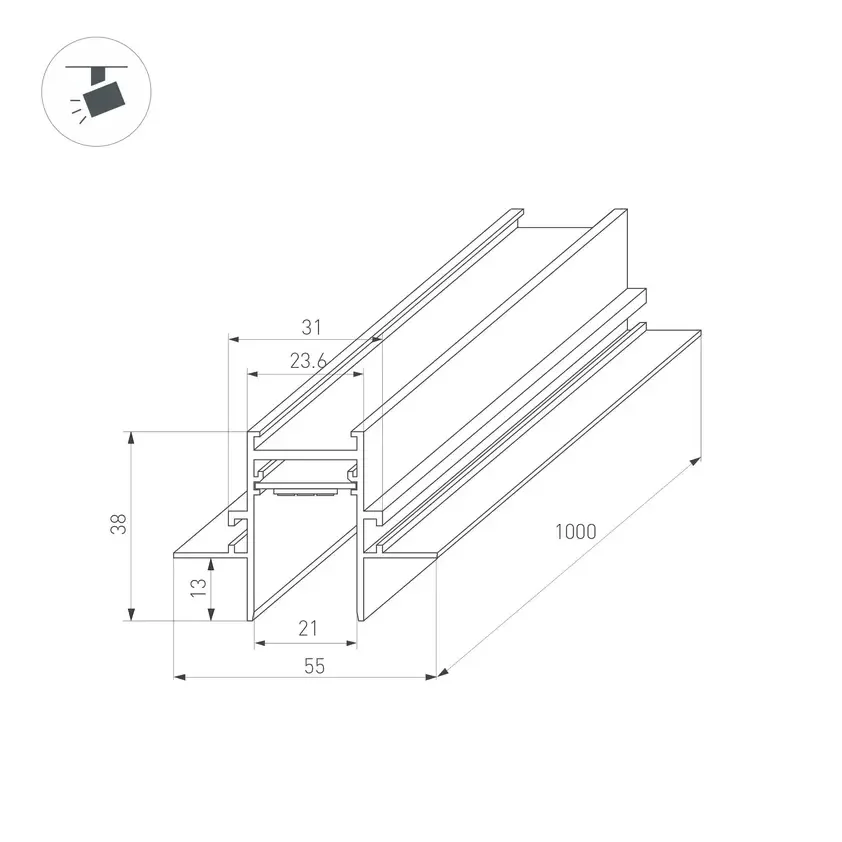 Трек MAG-TRACK-2538-1000 (WH, 5LN) (Arlight, IP20 Металл, 5 лет)