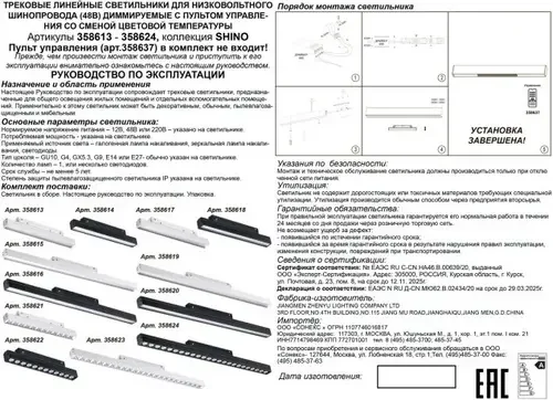 Трековый светильник для низковольного шинопровода с пультом управления Novotech FLUM 358613