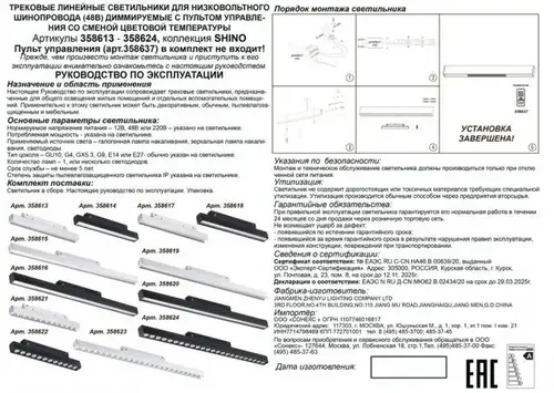 Трековый светильник для низковольного шинопровода с пультом управления Novotech FLUM 358615