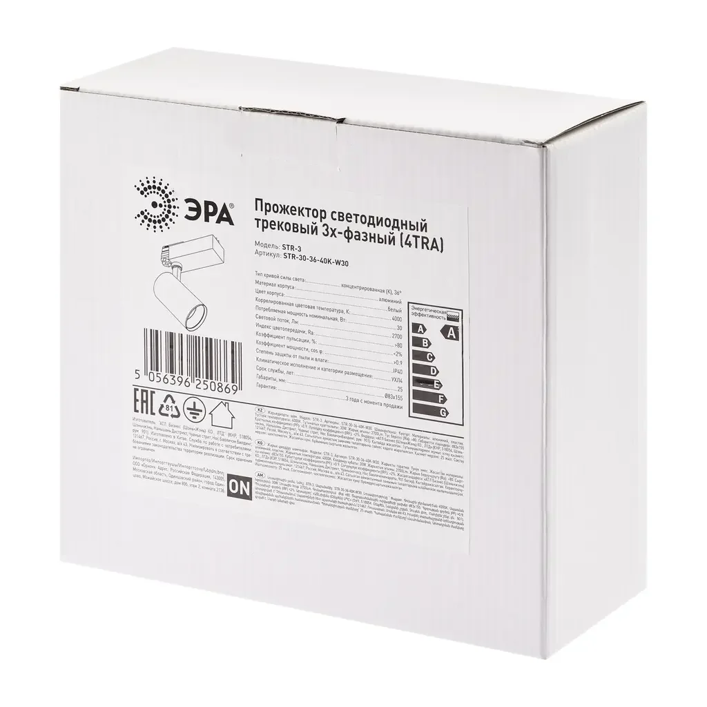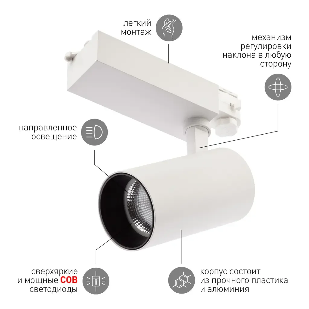 Трековый светильник трехфазный ЭРА SТR-30-36-40K-W30 узкий луч 4000K белый