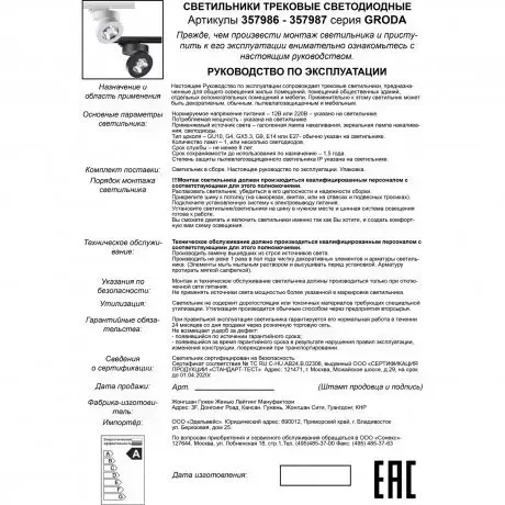 Трековый светодиодный светильник Novotech Groda 357987
