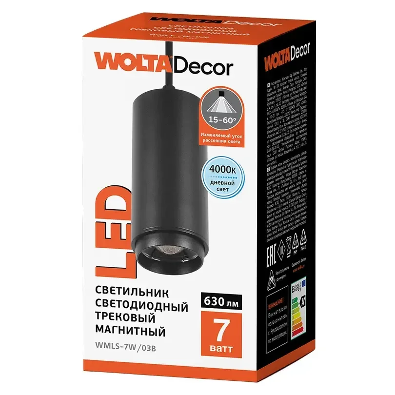 Трековый светодиодный светильник WOLTA WMLS-7W/03B 7Вт 4000К 48В IP40 Магнитный чёрный
