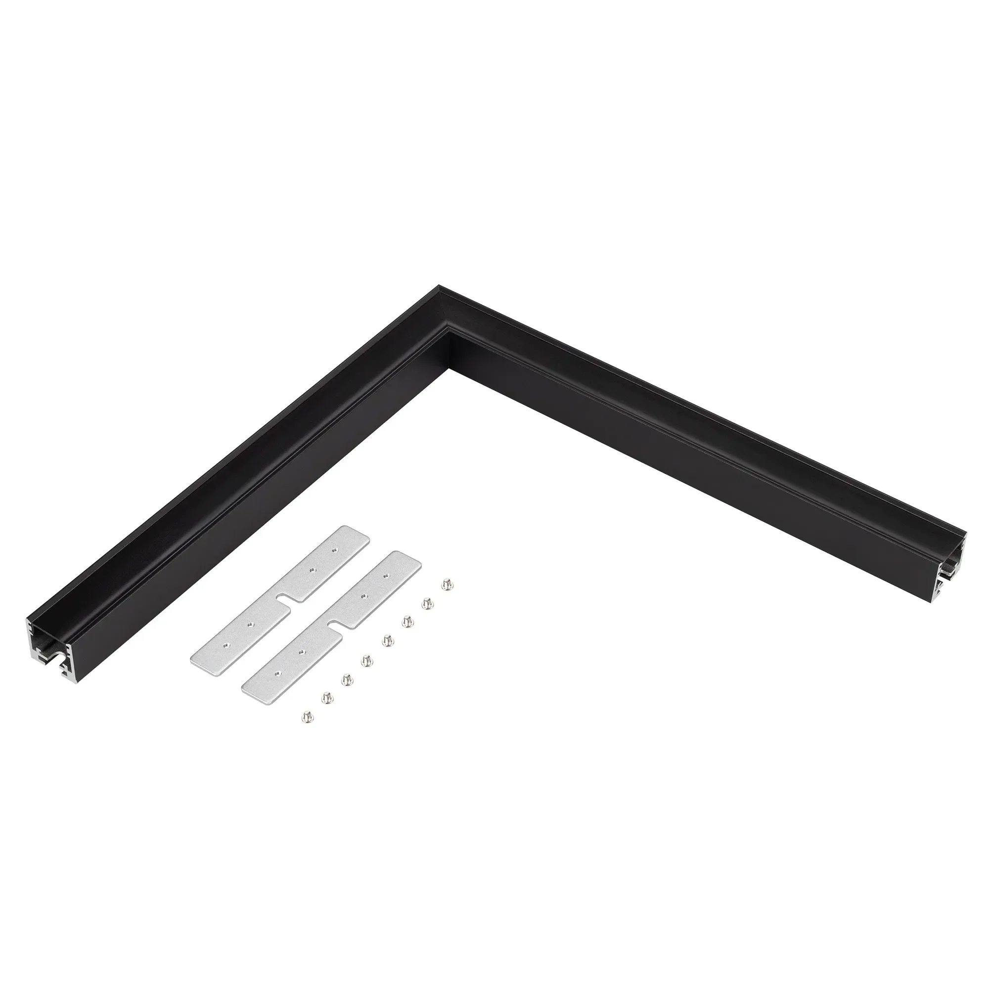 Прямой угол в сборе для соединения двух профилей SL-LINE-2522 черного цвета под прямым углом 90° в одной плоскости в комплекте с черным экраном и соединителями. Экран образует линию на плоскости. Применятся при изготовлении светильников сложной геометрии.