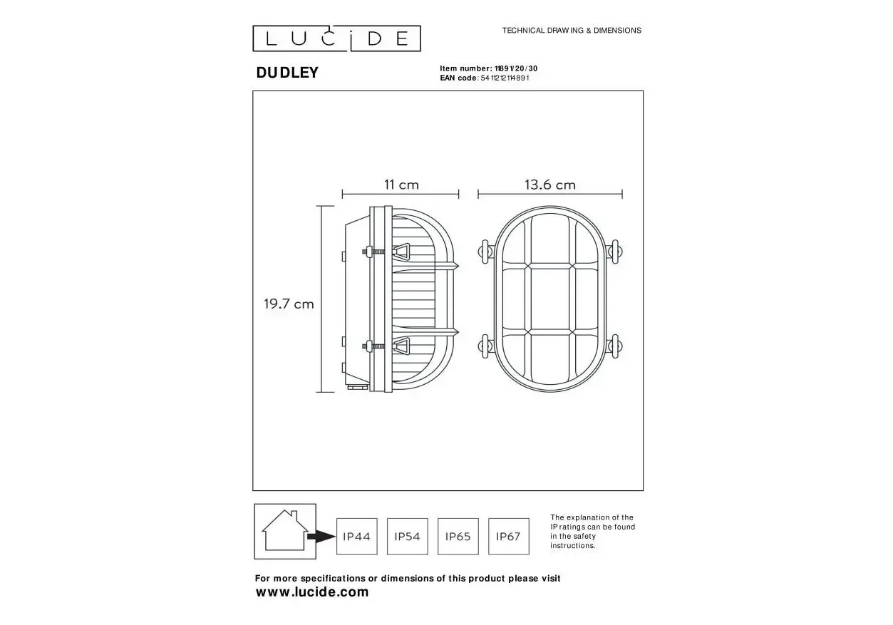 Уличный настенный светильник Lucide Dudley 11891/20/30