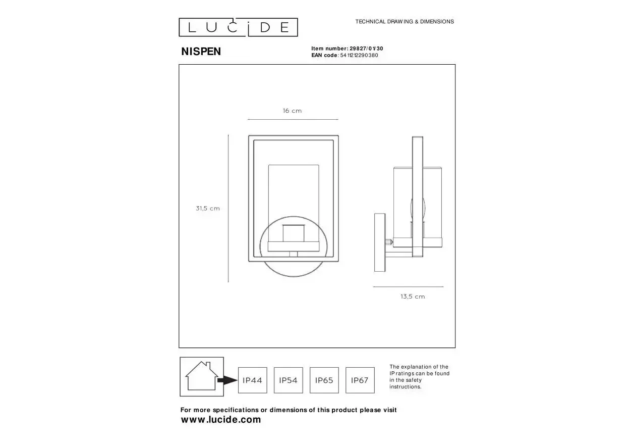 Уличный настенный светильник Lucide Nispen 29827/01/30