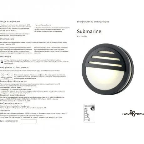 Уличный настенный светильник Novotech SUBMARINE 357231