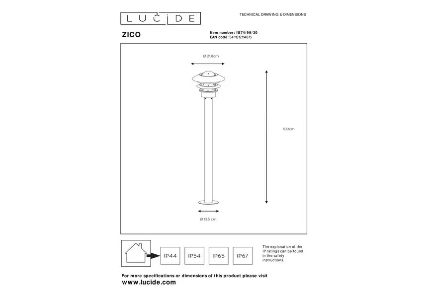 Уличный светильник Lucide Zico 11874/99/30