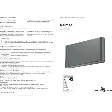 Уличный светодиодный бра Novotech KAIMAS 357422