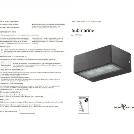 Уличный светодиодный настенный светильник Novotech SUBMARINE 357228