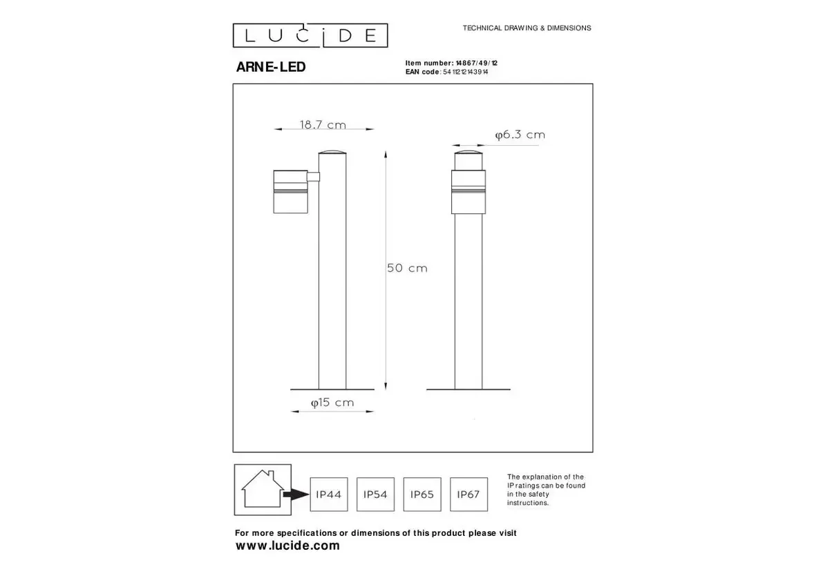 Уличный светодиодный светильник Lucide Arne-Led 14867/49/12
