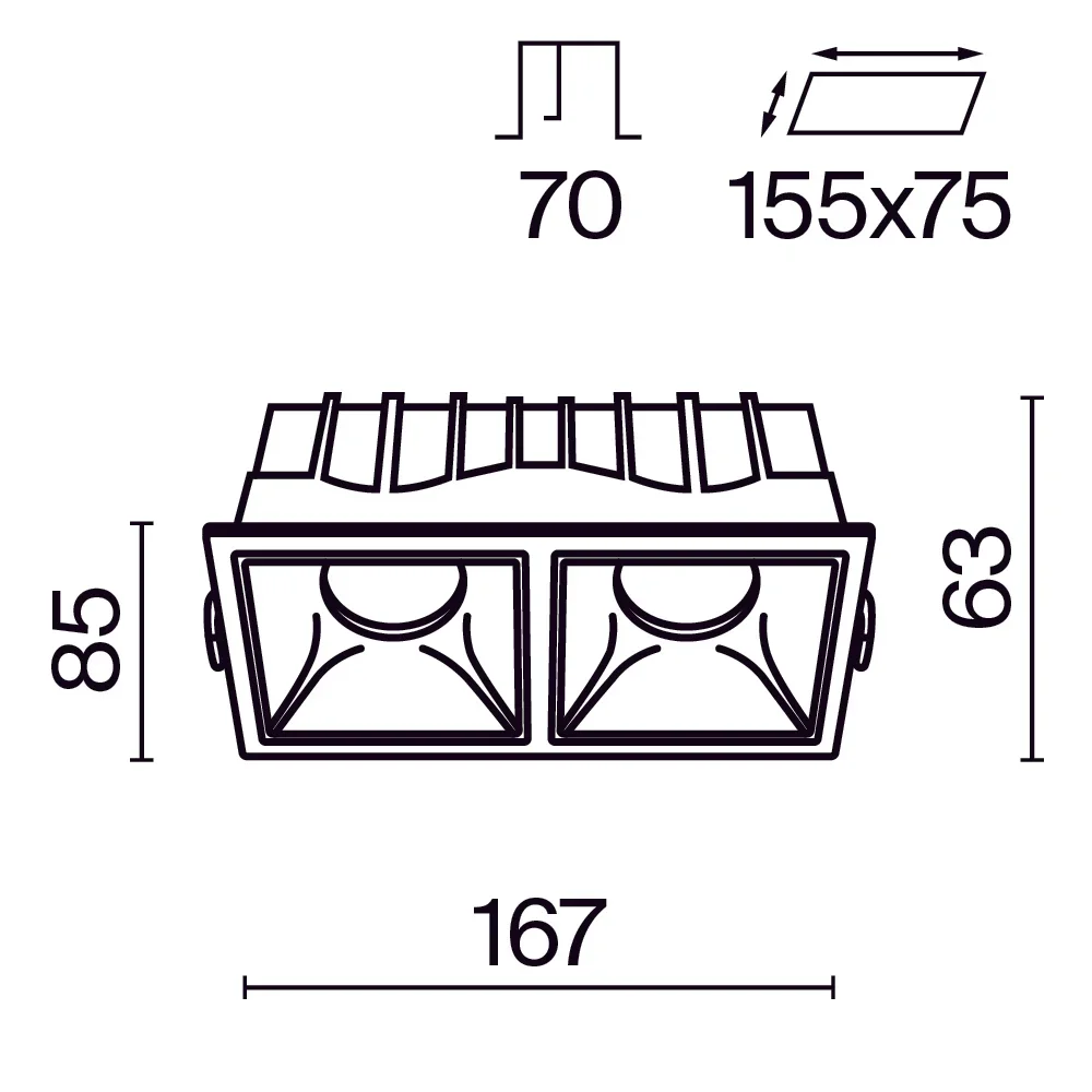 Встраиваемый светильник Alfa LED 3000K 2x15Вт 36° Dim Triac DL043-02-15W3K-D-SQ-WB