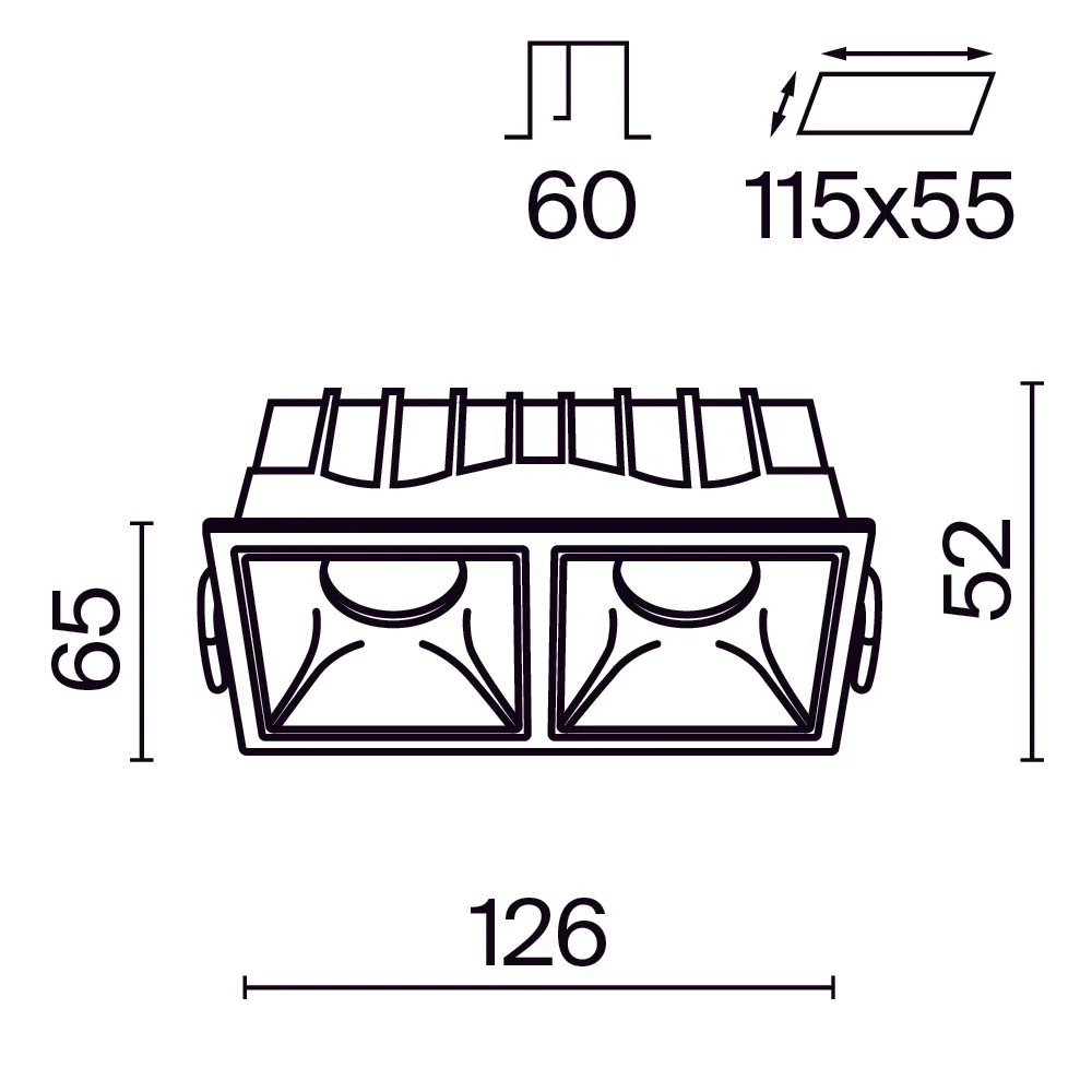 Встраиваемый светильник Alfa LED 4000K 2x15Вт 36°, DL043-02-15W4K-SQ-W