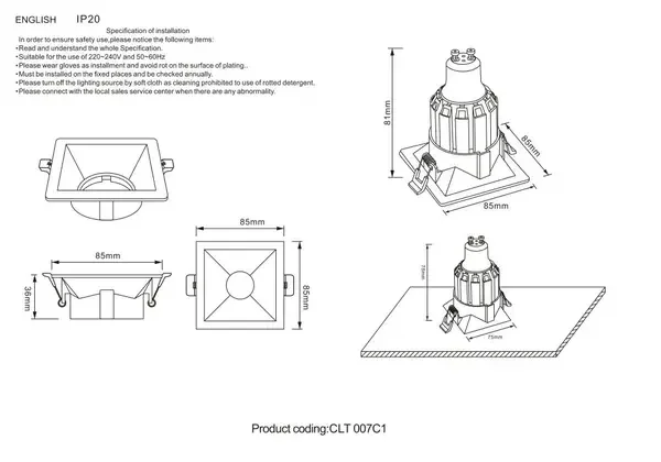 Встраиваемый светильник Crystal Lux CLT 007C1 BL