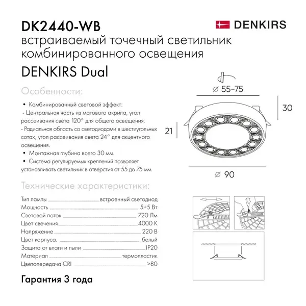 Встраиваемый светильник Denkirs DK2440-WB