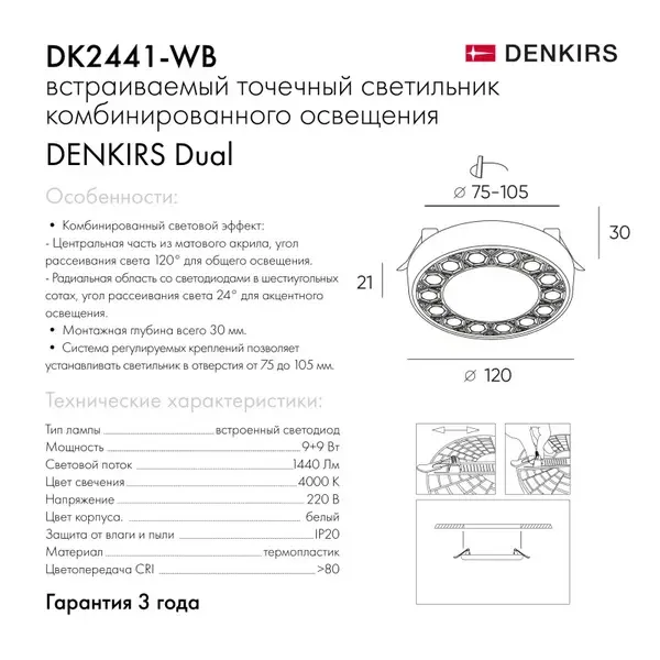 Встраиваемый светильник Denkirs DK2441-WB