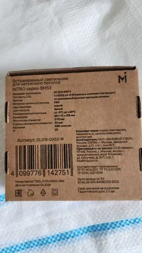 Встраиваемый светильник Intro для натяжного(ПВХ) потолка GX53 1x15Вт, DL019-GX53-W