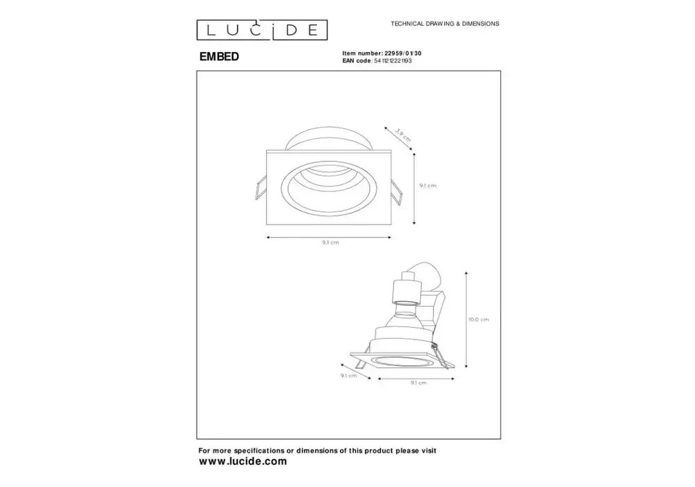 Встраиваемый светильник Lucide Embed 22959/01/30