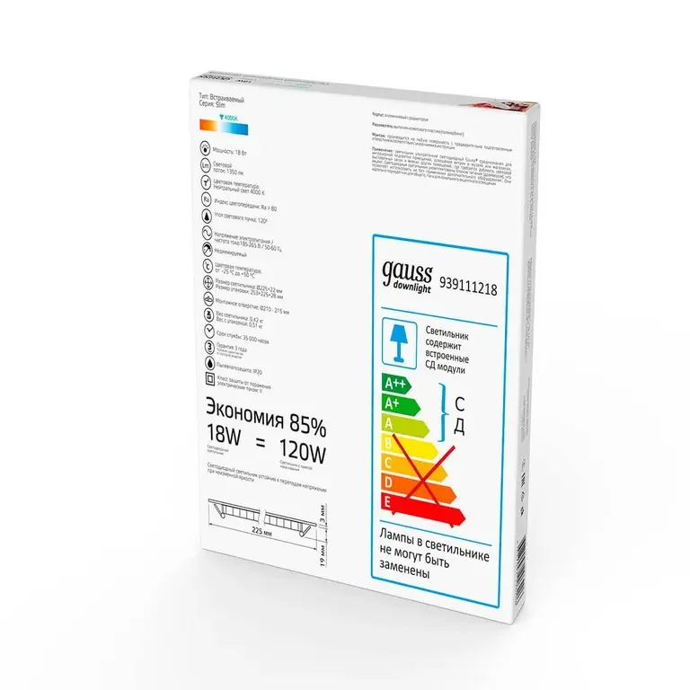 Встраиваемый светодиодный светильник Gauss 939111218
