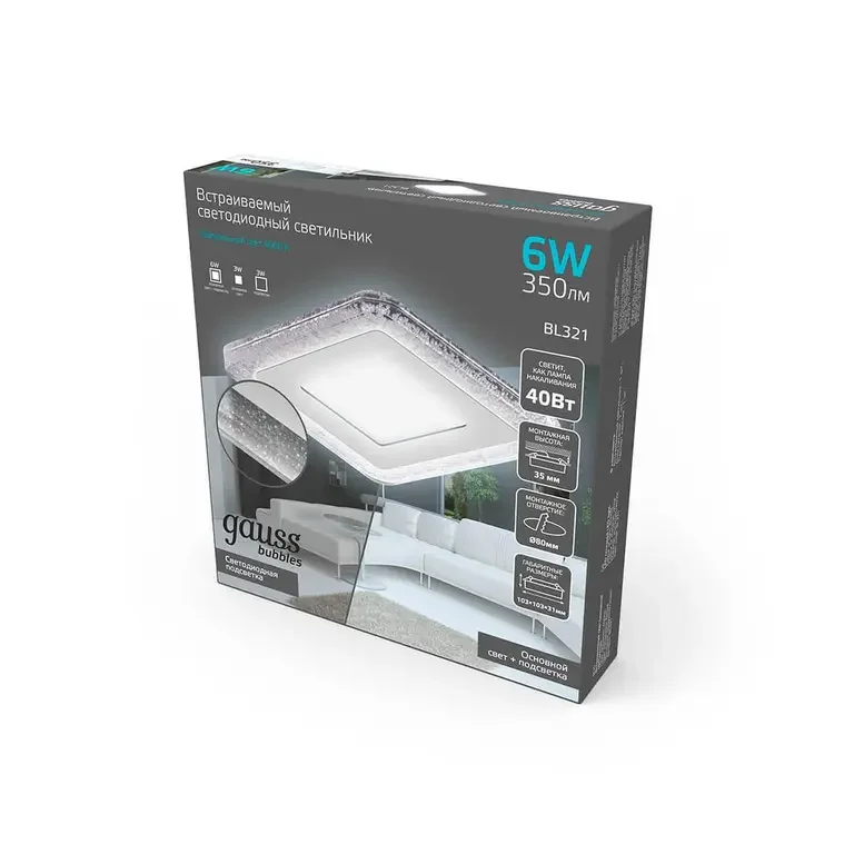 Встраиваемый светодиодный светильник Gauss Backlight Bubbles BL321