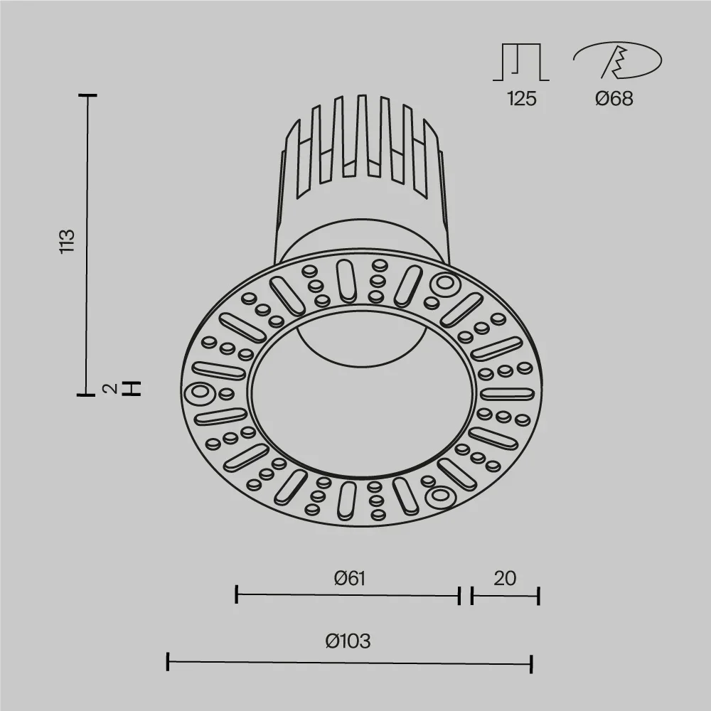 Встраиваемый светильник Dip Height+ 3000K 15Вт 50°, DL122-15W-3K-TRS-W