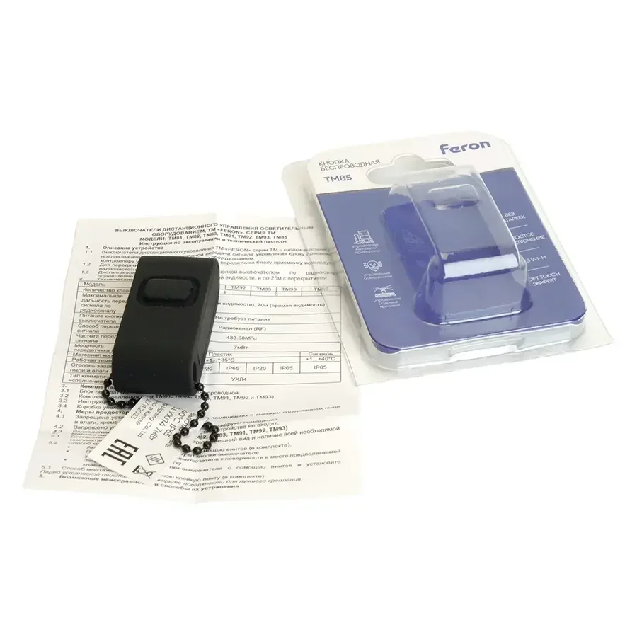 Выключатель беспроводной FERON TM85 SMART, 7мВт, IP65, одноклавишный soft-touch, черный, 48879