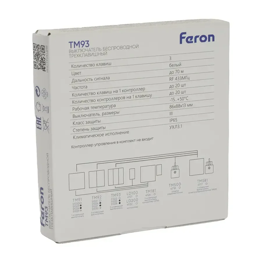 Выключатель беспроводной FERON TM91 SMART, 7мВт, IP65, одноклавишный, графит, 51023