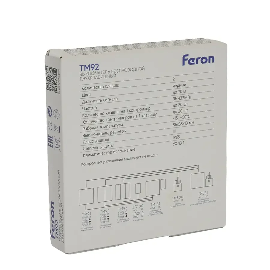 Выключатель беспроводной FERON TM92 SMART, 7мВт, IP65, двухклавишный, черный, 51027