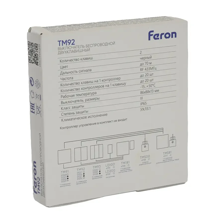Выключатель беспроводной FERON TM93 SMART, 7мВт, IP65, трехклавишный, черный